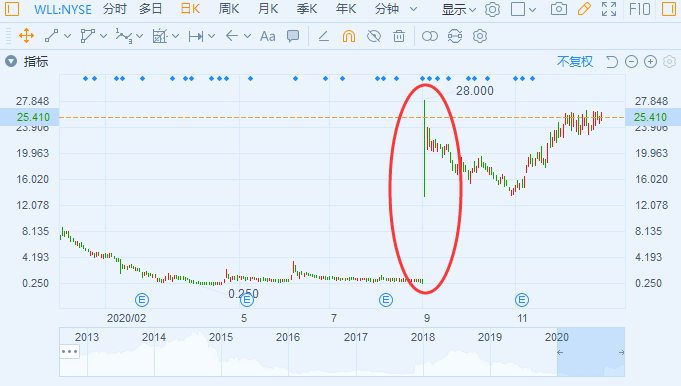 石油股又回来了?不,这只是一单个例。 今年4月,也就是国际油价首次跌入负区间之际,怀丁石油成为美国第一家申请破产的公开上市页岩油生产商。 但在9月初,这家企业宣布已经摆脱破产保护困境,完成财务重组,并预计今年下半年产量将达到每天8.8万至9.2万桶石油,资本支出则将达到3400万至3900万美元。 公告过后,怀丁石油股价一飞冲天, 当日盘中一度飙升逾4500%,最终收涨近3350%。这一波强势反弹过后,该股当月累计上涨2062%,领衔美股。