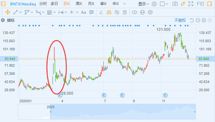 在消息公布后的3个交易日里,BioNTech股价累计上涨超130%,随后有所回调。整个月下来,该股股价累计涨幅约为66%,收益仍属可观。
