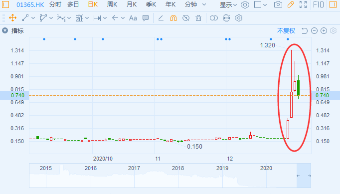 这一年,中国的春节来得很早。在疫情“黑天鹅”的意外来袭之下,股民们与期待已久的“开门红”失之交臂。 但就在欧美股市震荡、港股一片惨淡之际,有一只医药“仙股”异军突起, 4个交易日暴涨30倍,1月涨幅高达1773%。 在1月29日这一天,也就是港股年后开市的第一天,中国医疗集团大涨280%,第二天又再接再厉猛涨388%。到了1月的最后一天,这只股票一度涨至3.91港元,创下盘中历史新高。